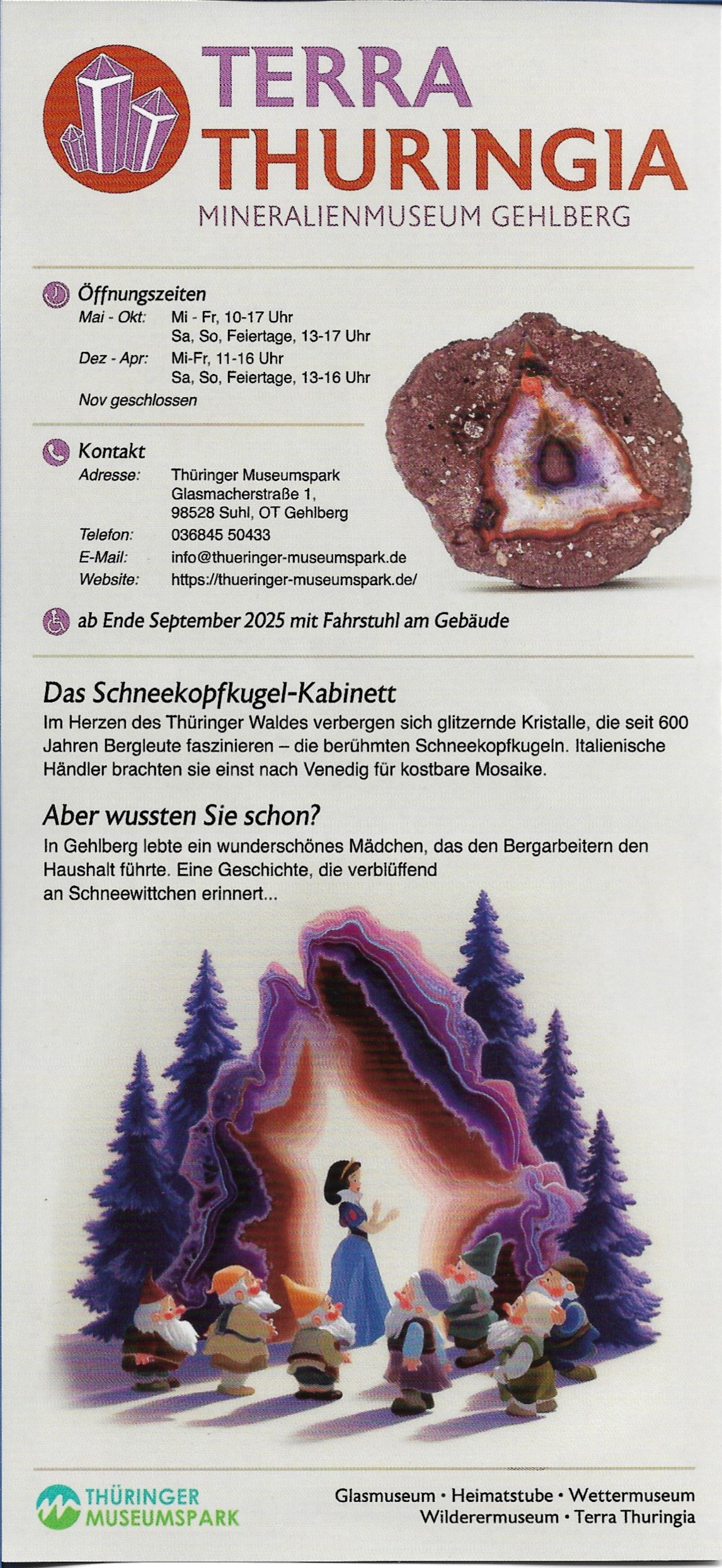 Die TERRA THURINGIA beinhaltet eine hervorragende Ausstellung von Schneekopfkugeln aller bekannten Thüringer Fundstellen. Ihr Umfang und ihre Qualität ist einzigartig in Thüringen und Deutschland.